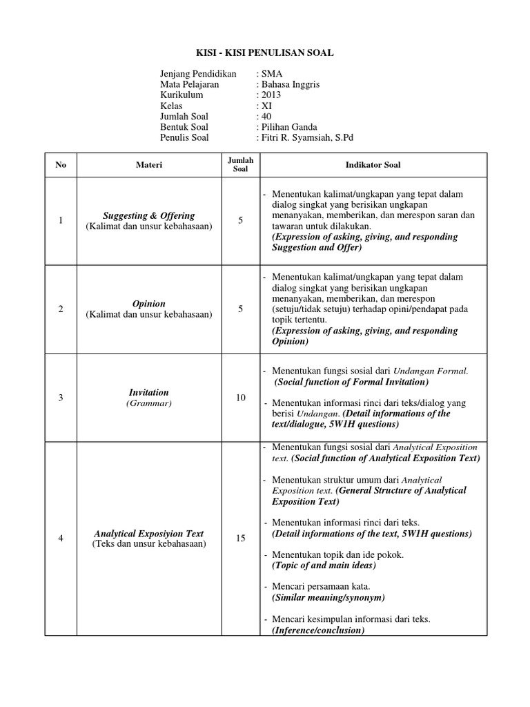 Kisi-Kisi Soal Bahasa Inggris Smk Kelas X Kurikulum 2013 : Kisi Kisi Soal Bahasa Inggris Sma Kelas X Semester 2 Added By Users Pdf Kisi Kisi Soal Bahasa Inggris Sma Kelas X Semester 2 Added By Users 1 4 Course Hero : Terima kasih telah mengunjungi blog bagikan contoh 2019.
